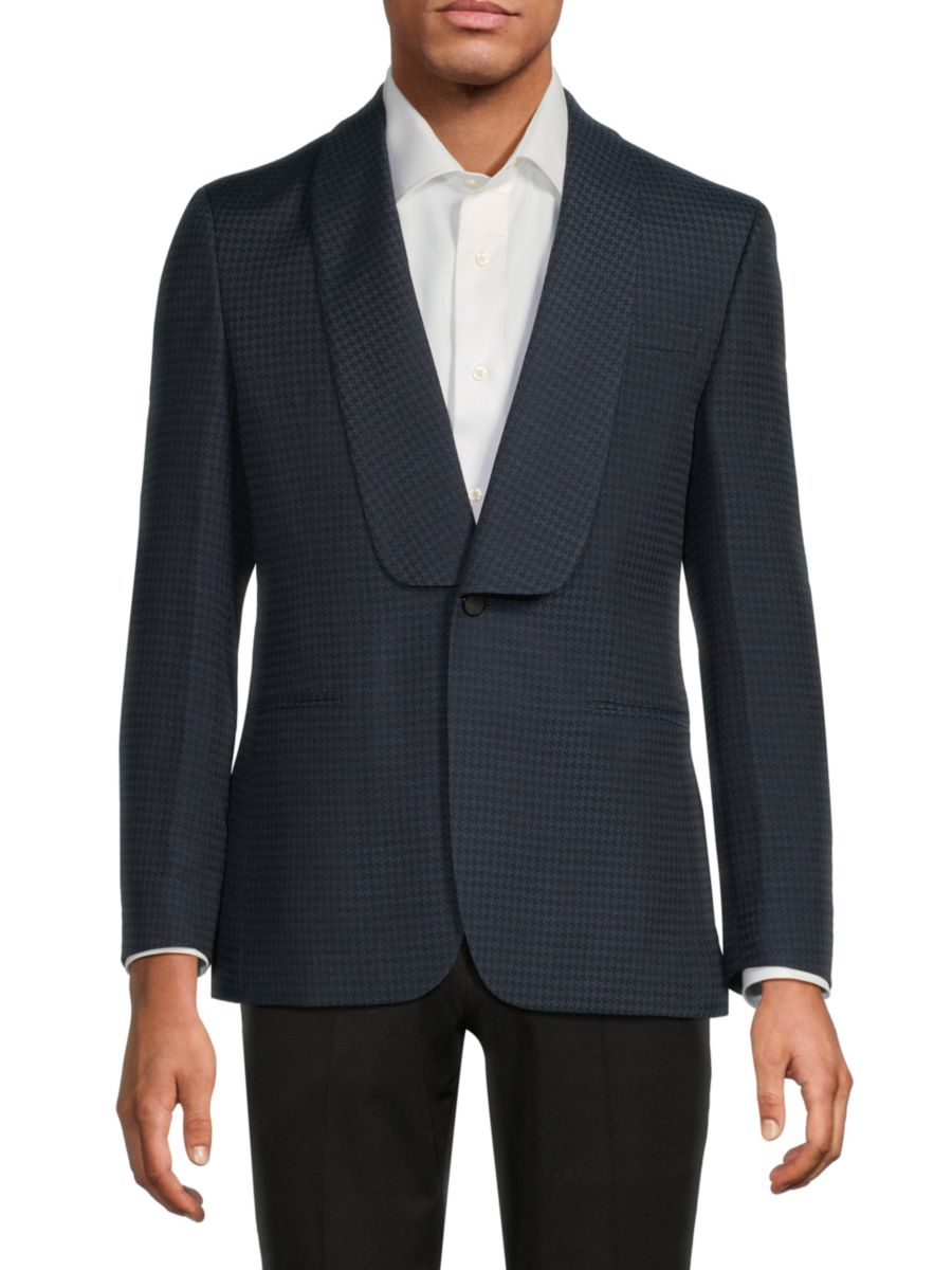 Однобортный пиджак Modern Fit с узором гусиная лапка Karl Lagerfeld Paris, темно-синий