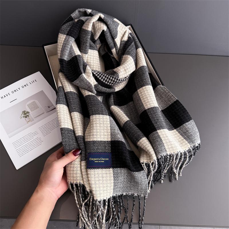 Премиальный клетчатый осенне-зимний ретро теплый шарф женская шаль универсальный для поездок бахрома тонкий песок имитация кашемира шарф 200cmX53cm (with tassel)