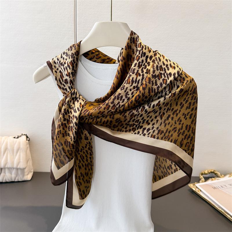 Премиальный платок из сатина с леопардовым принтом, имитация шелка, с принтом, большой квадратный платок, шелковый платок, шаль, головной платок, шарф для защиты шеи, украшение для шеи, женский платок 90*90cm