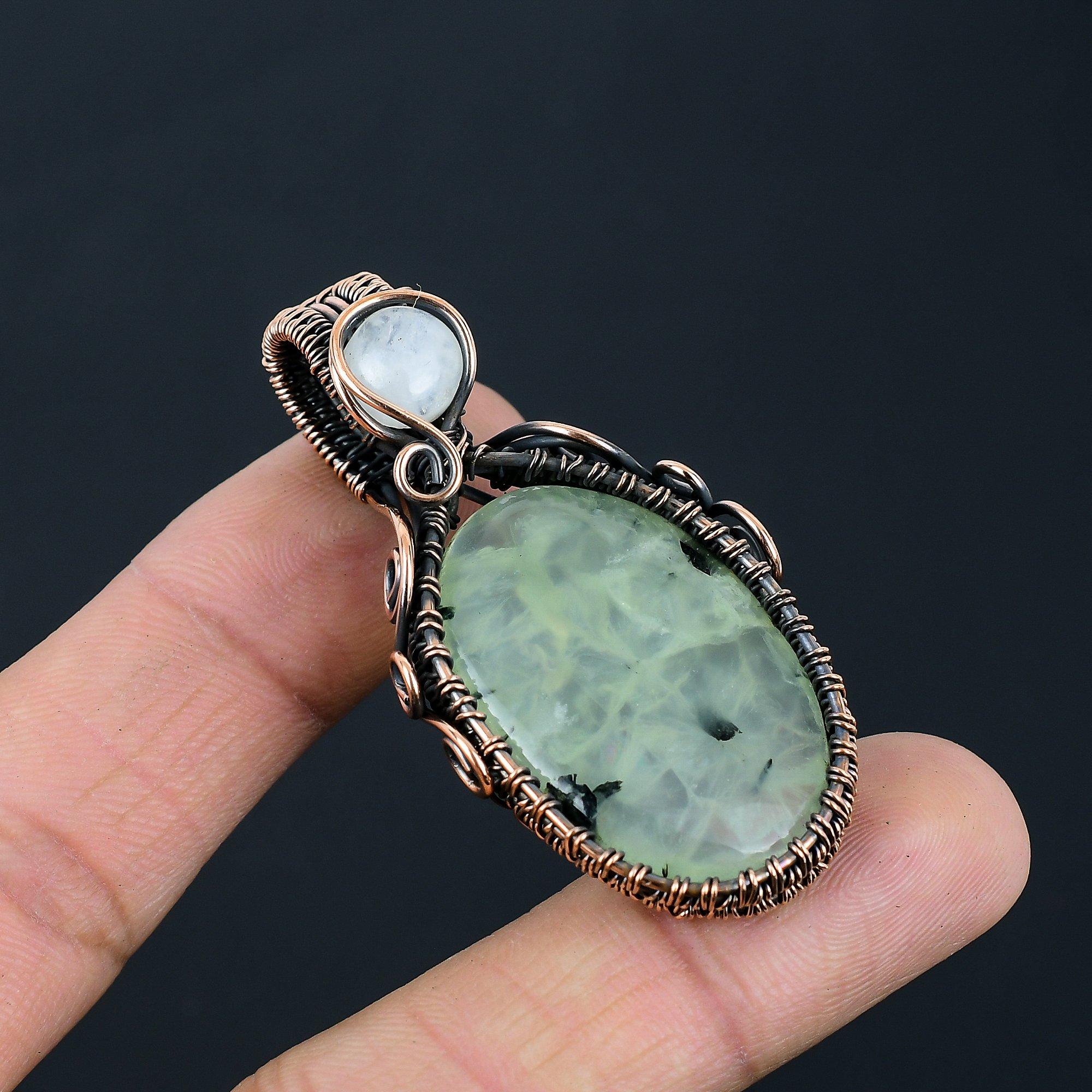 Пренит и лунный камень, драгоценный камень, подвеска ручной работы из чистой медной проволоки, ювелирное изделие для любви 2.28 Inches зелёный