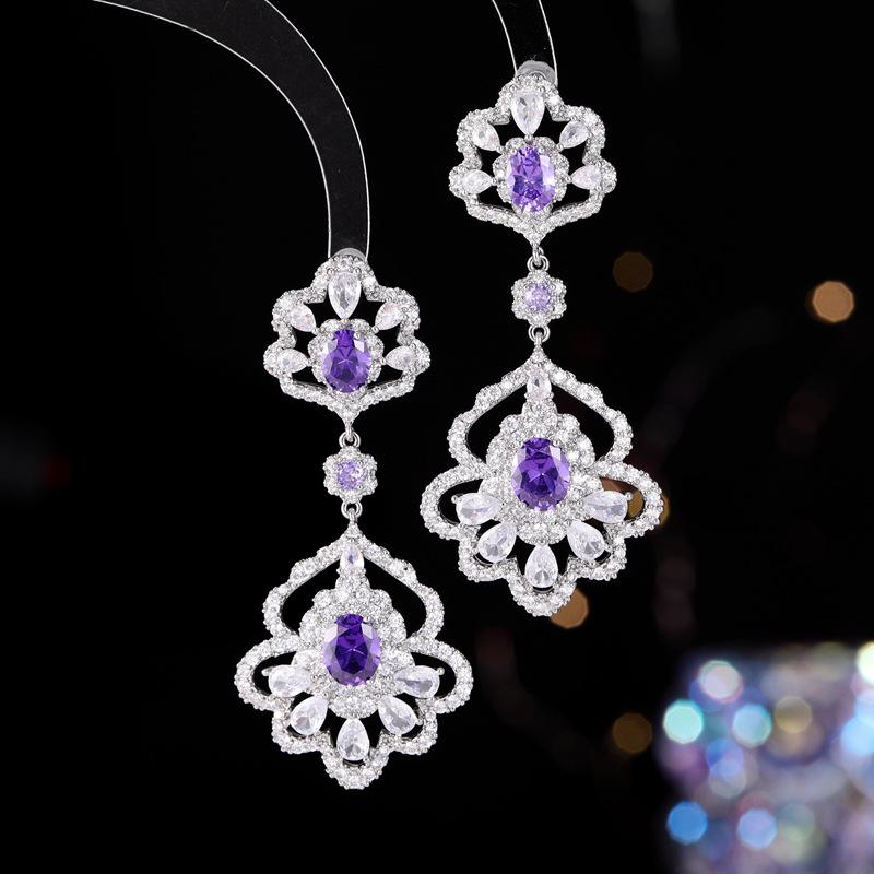 Преувеличенные атмосферные роскошные серьги, яркое инкрустированное цирконами полое банкетное платье с серьгами