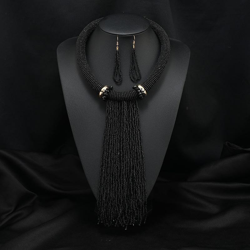 Преувеличенные рисовые бусины, длинное ожерелье с бахромой, этнический стиль, персонализированное женственное украшение, многослойная ретро цепочка для свитера