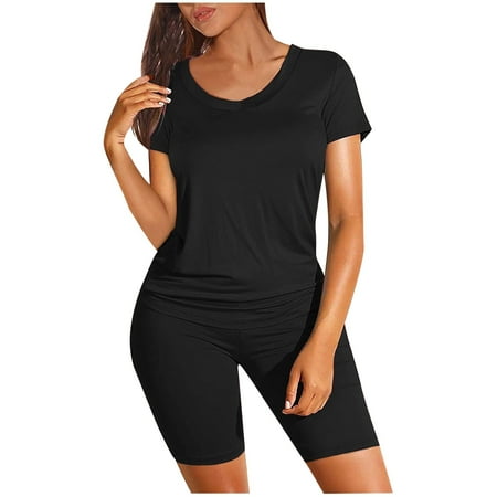 Dadaria 2 Piece Outfits for Women Shorts Set Plus Two Piece Outfits Short Sleeve O Neck Biker Shorts Set Cycling Suit Black XL Female