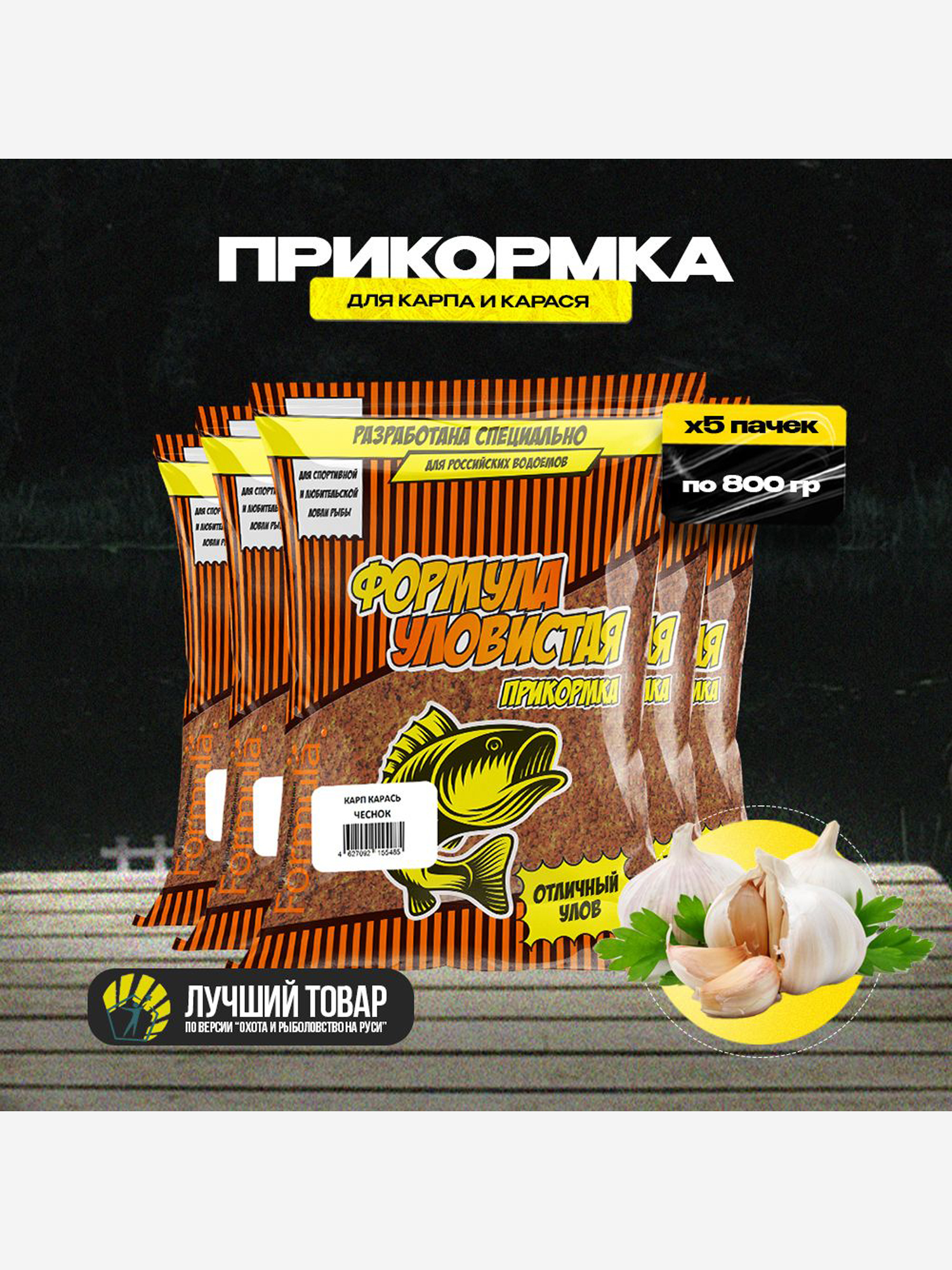 Прикормка рыболовная УЛОВИСТАЯ для карпа и карася с ароматом ЧЕСНОКА 5 пачек по 0.8 кг, Коричневый