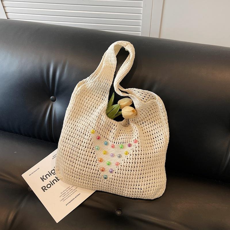 Приморская сумка-тоут через плечо для поездок на работу, вязаная сумка для отпуска, женская летняя цветная жемчужная ажурная сумка большой вместимости под мышкой, женская 38*8*27