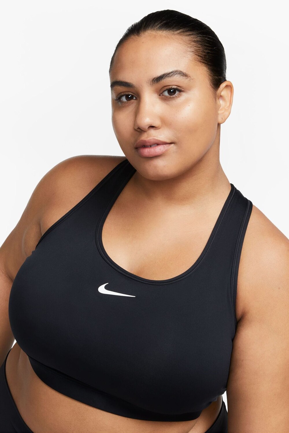 Спортивный бюстгальтер с логотипом средней поддержки и изгибом Nike, черный