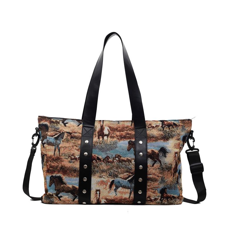 Принт Дорожная сумка Большая вместимость Повседневная сумка через плечо Сумка на плечо чёрный