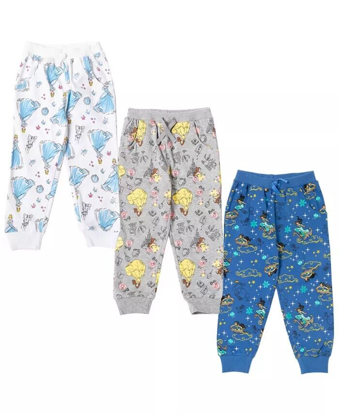 Принцесса Золушка, Белль, Жасмин, Моана, Рапунцель, Ариэль, комплект из 3 флисовых штанов для девочек, комплект из 3 штанов для малышей, для девочек Disney, мультиколор