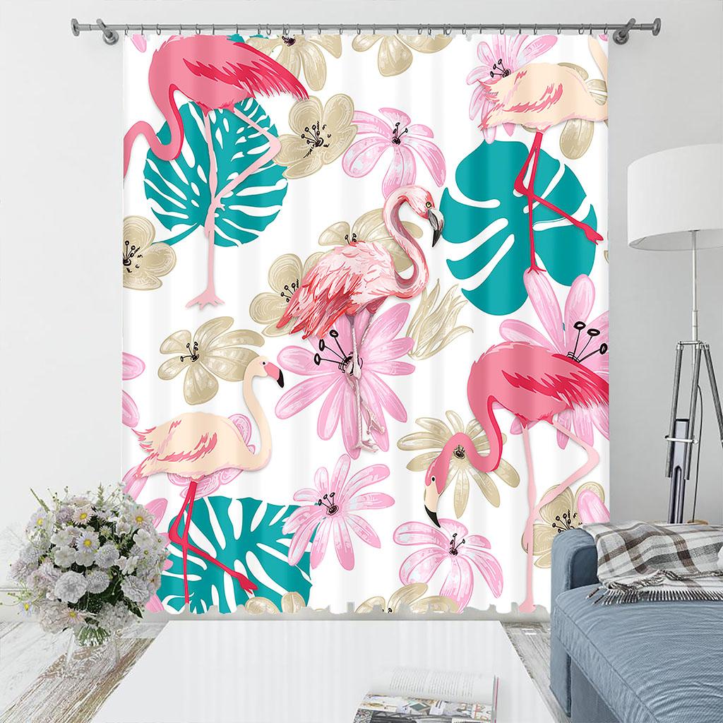 Природа Зеленые Листья Полиэстер Роскошные Шторы, Цветок, Лимон, Розовые Фламинго, Тонкое Затенение, Спальня, Гостиная, Домашний Декор 120W243H&Hook
