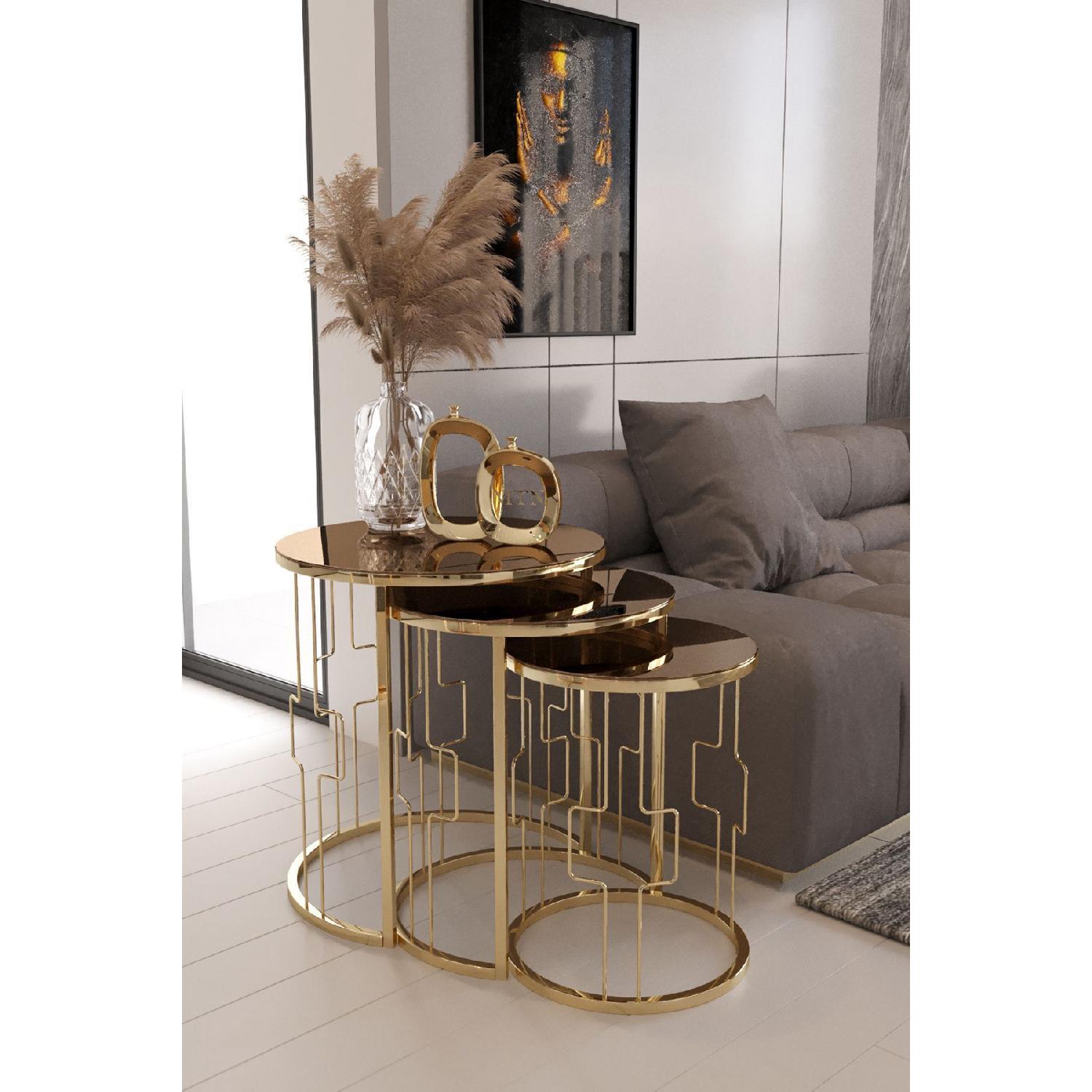 Проводной 3-местный журнальный столик Nesting с золотой ножкой, бронзовый, с зеркалом