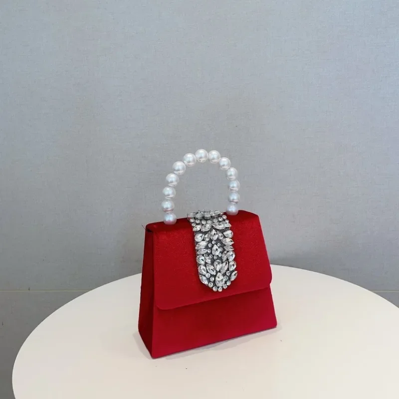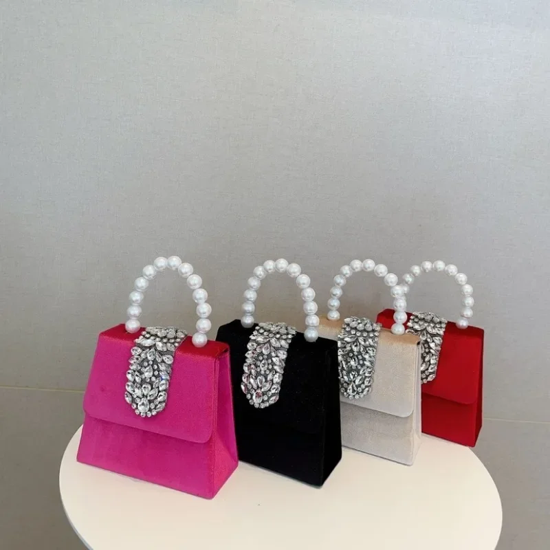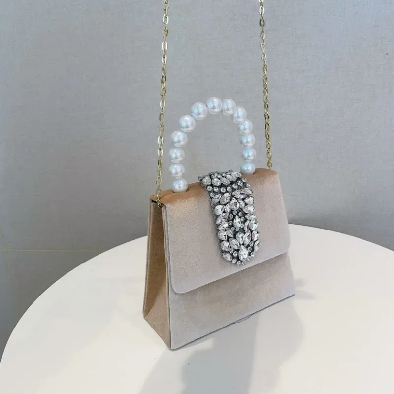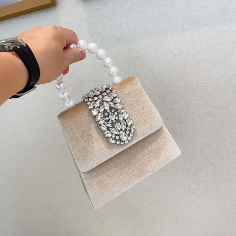 Продвинутая Роскошная вечерняя сумочка с водяными бриллиантами и жемчугом, новая модная бархатная женская маленькая квадратная сумка через плечо в стиле ретро с цепочкой