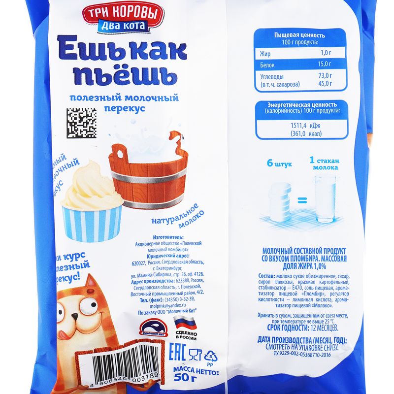 Продукт молочный Три коровы Два кота Ешь как пьешь со вкусом пломбира, 50 г