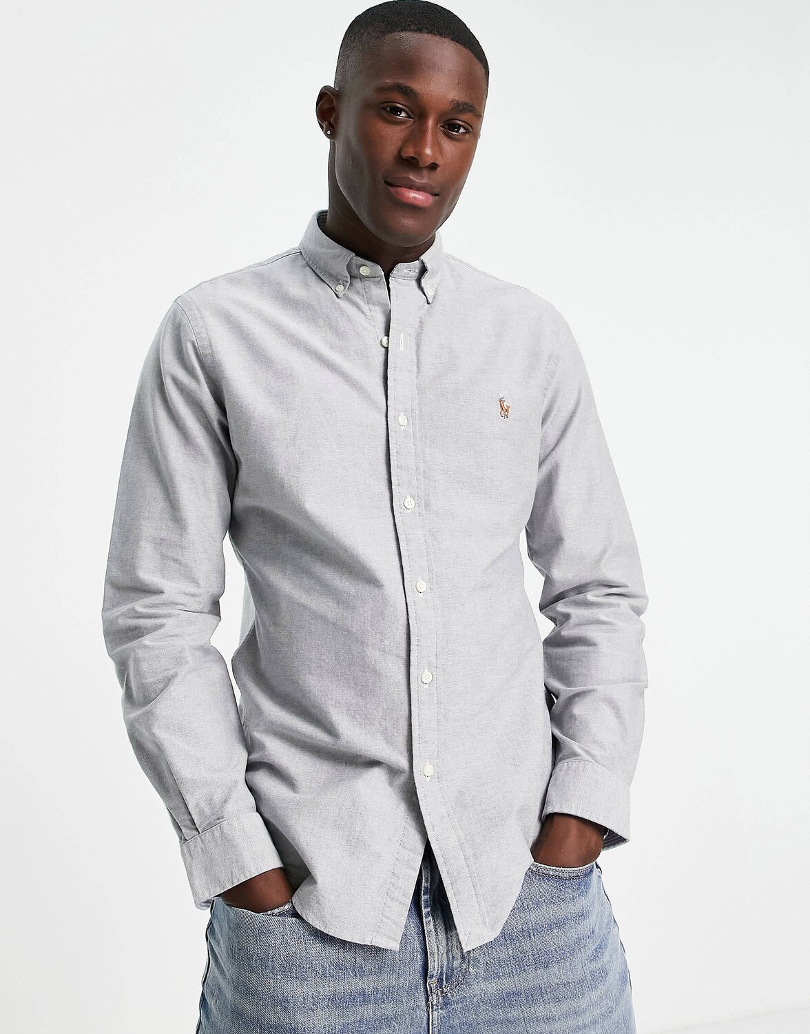 Темно-серая приталенная оксфордская рубашка на пуговицах Polo Ralph Lauren icon logo