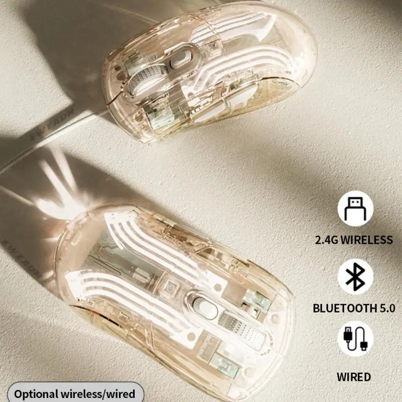 Прозрачная Проводная Беспроводная Bluetooth-мышь RYRA Q8, бесшумная цветная игровая электронная мышь RGB для соревнований, офиса, красоты