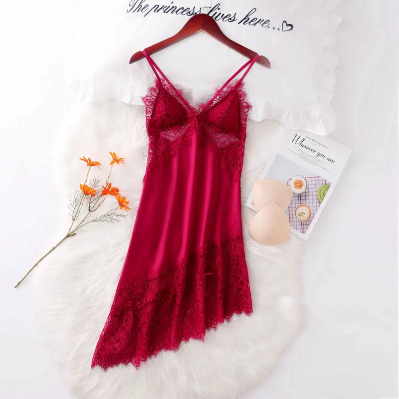 Прозрачная Сексуальная ночная рубашка, атласная ночная рубашка, Женская кружевная ночная сорочка, одежда для сна, интимное нижнее белье, ле...