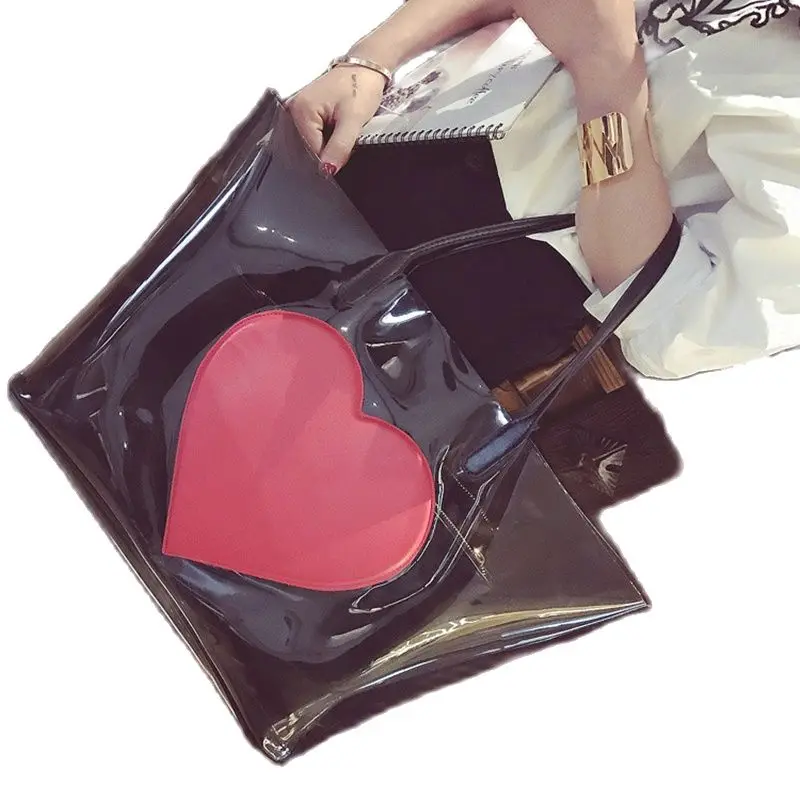 Прозрачная пляжная сумка Желейная сумка на плечо из ПВХ роскошные сумки для покупок большая сумка-тоут в форме сердца композитная сумка уни...