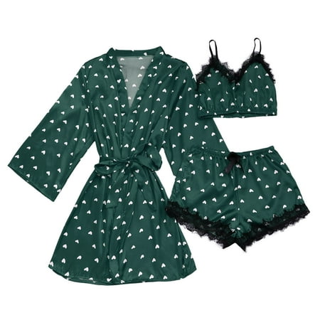 Womens Pajamas Print Push Up Three Pieces Sleeveless Shorts Underwear Sleepwear Women