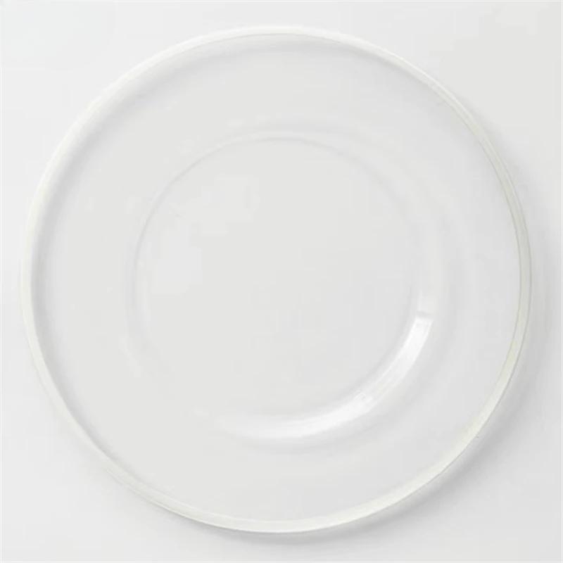 Прозрачная стеклянная подстановочная тарелка, Декоративная свадебная обеденная тарелка, Круглая посуда, Поднос для демонстрации, Дизайн с белой линией