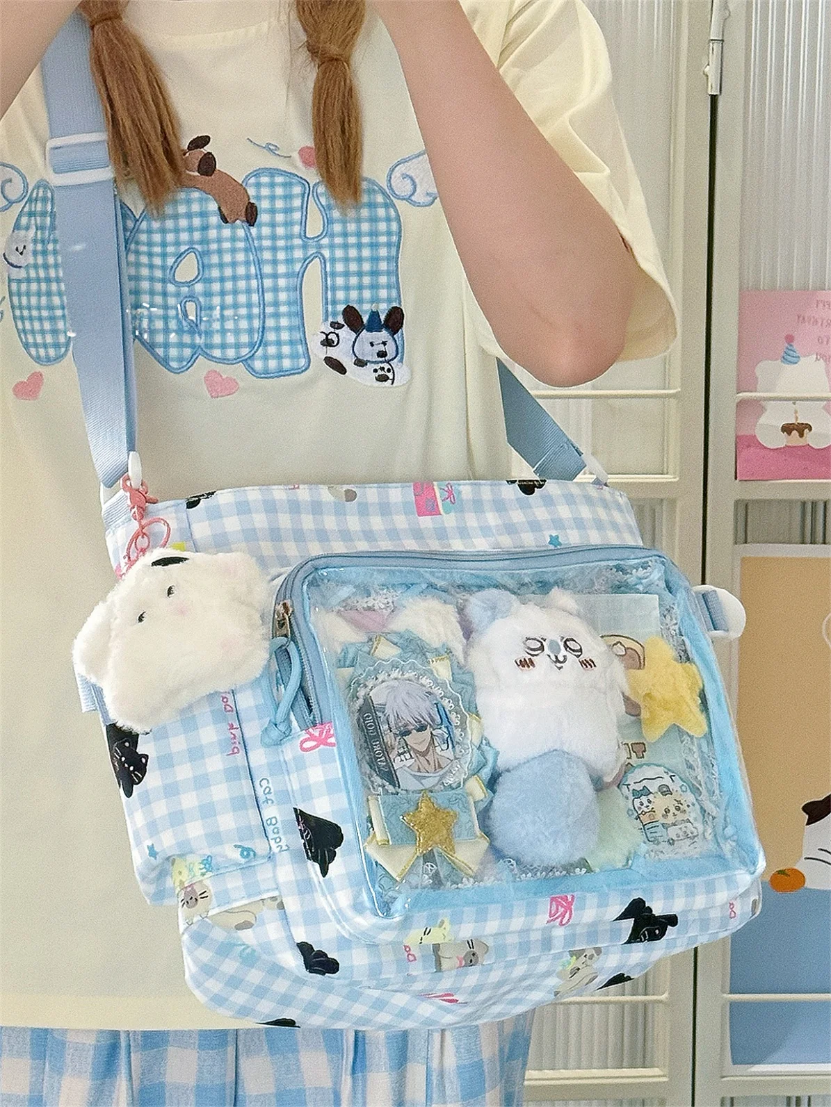 Прозрачная сумка через плечо с милым мультяшным принтом, сумка на одно плечо для косплея, выставок, милая школьная сумка, большая сумка Capaci