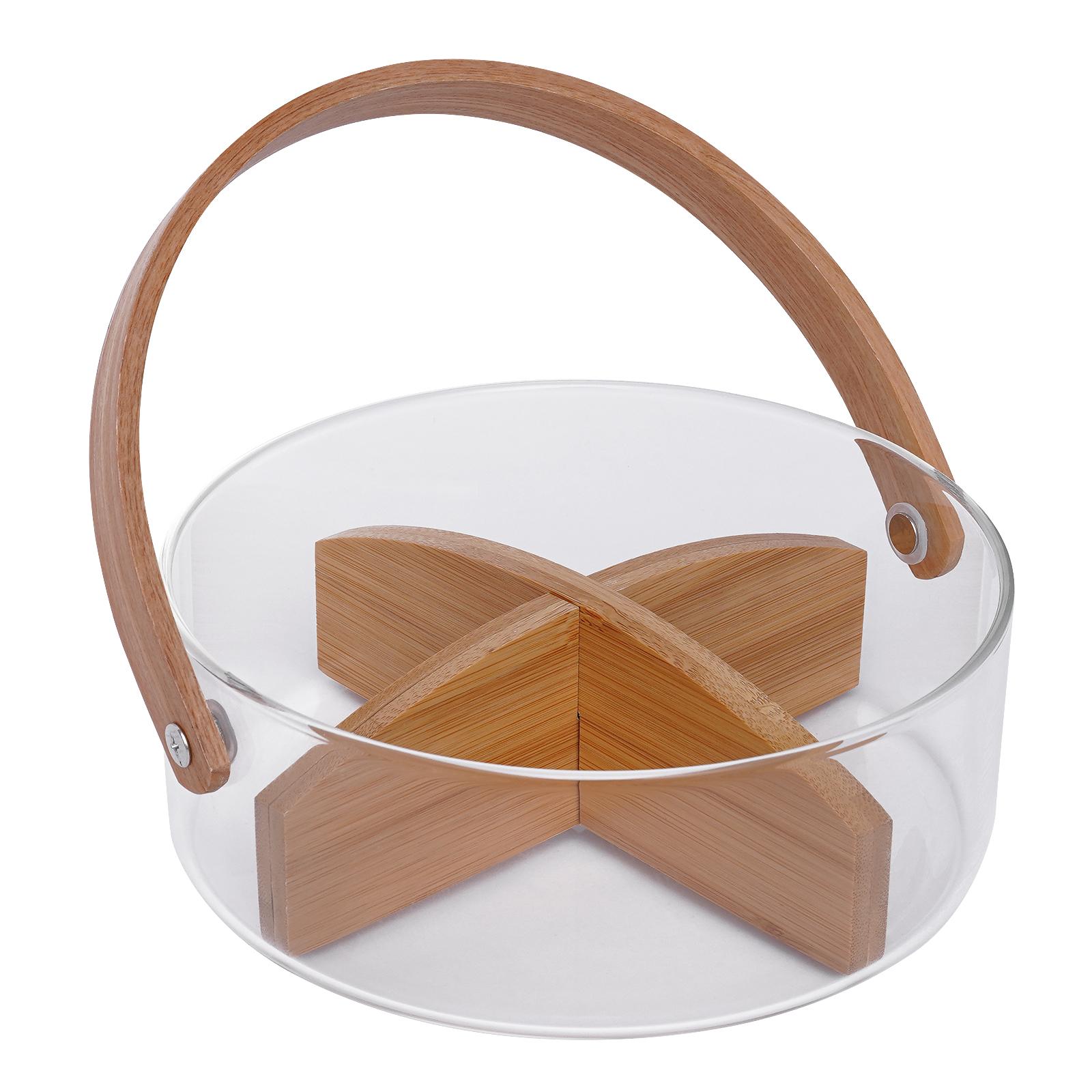 Прозрачная фруктовая ваза с разделителями, органайзер для конфет, фруктовая тарелка, полезные материалы, разделенный поднос для сервировки и ручка, большая емкость
