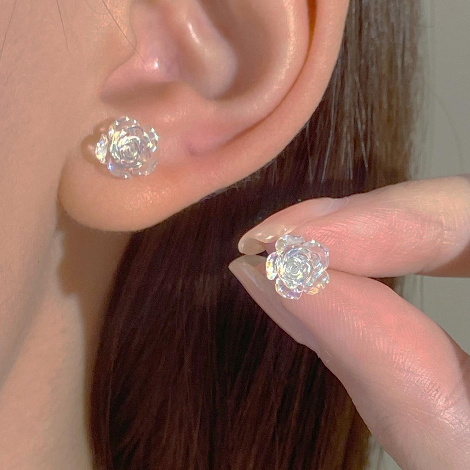 Прозрачные серьги с камелией, серия «Лес», серьги со свежими и яркими розами
