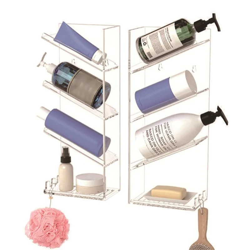 Прозрачный акриловый Органайзер для ванной комнаты, держатель для душа, без сверления клея, держатель для шампуня, настенный с крючками, 1 шт.