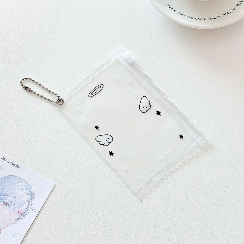 Прозрачный брелок-держатель для фотокарточек Кавайные ангельские крылья Фото Застежка-молния Рукава для карточек Портативный протектор для демонстрации карточек Подвеска