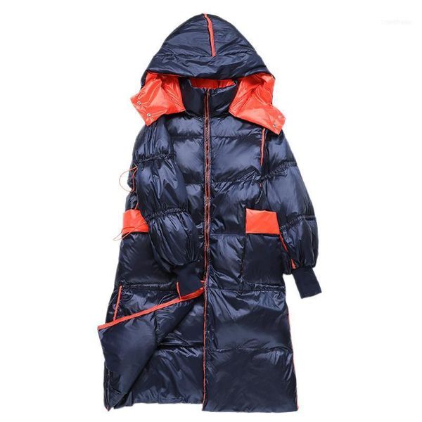 ailegogo 2021 winter women bright color hooded long down parkas 90% white duck coat zipper warm snow black jacket outwear1