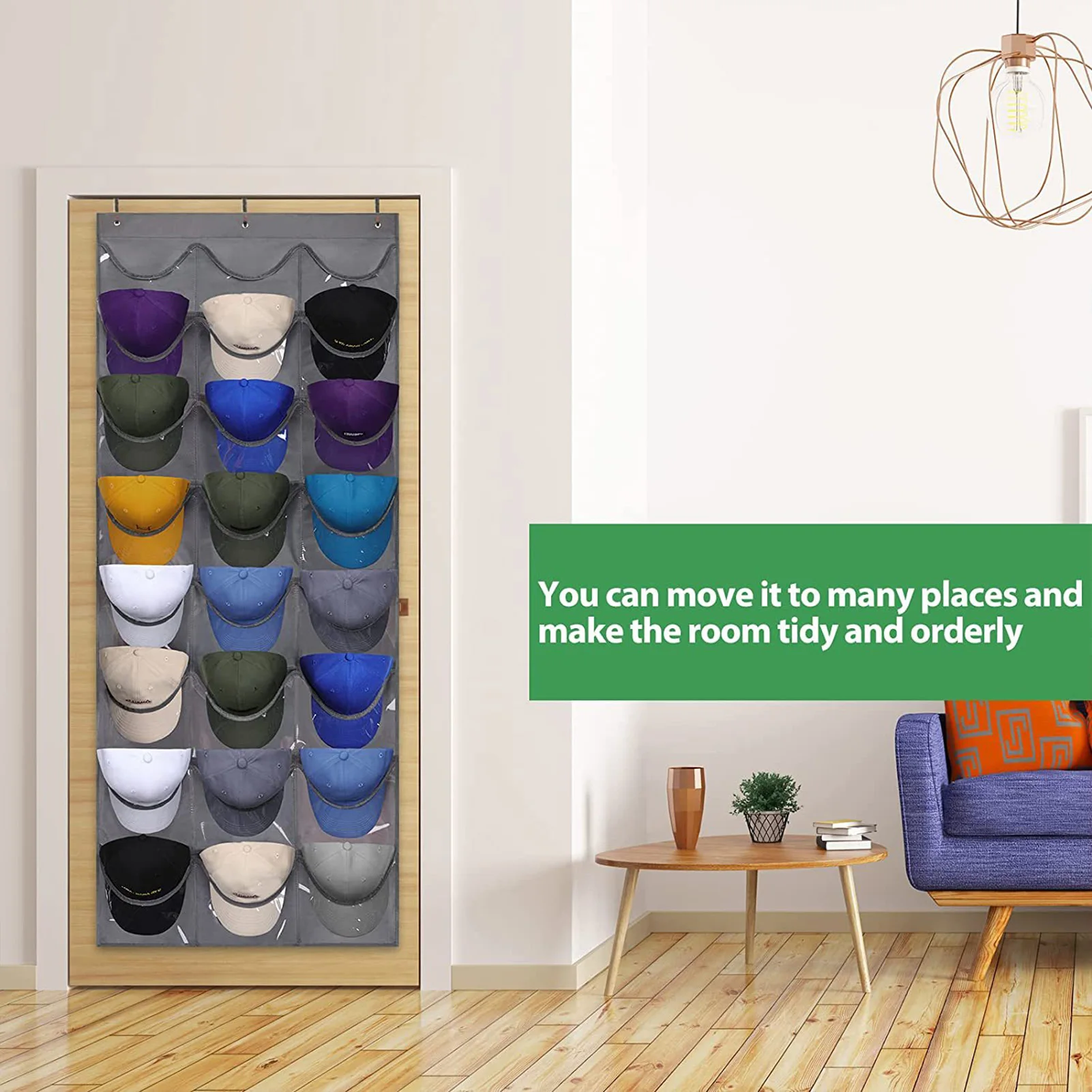 Прозрачный держатель для шляпы, органайзер из ПВХ с карманами для шляп, бейсболок, 24 ящика для хранения, держатель на дверь для организации н...