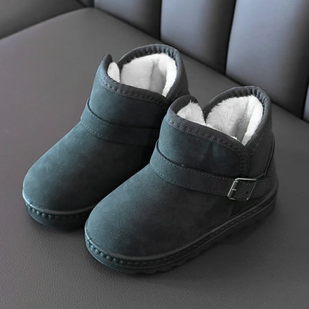 Girls Boys Fleece Snow Boots Plain Color Soft Sole Anti Slip High Top Thick Warm Shoes For Winter