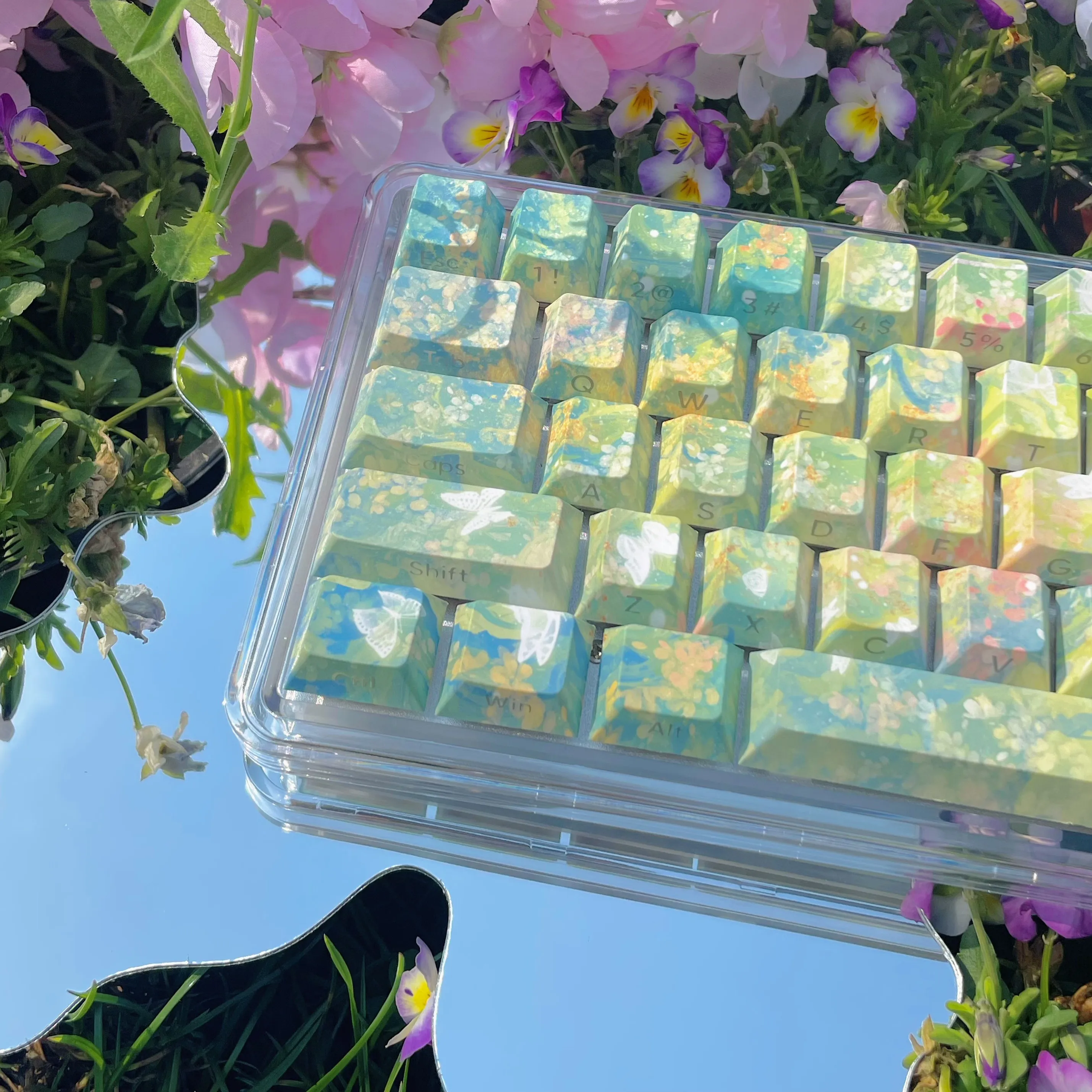 Прозрачный колпачок с боковой гравировкой, зеленая тема, материал pbt, 135 клавиш, оригинальная адаптация высоты, магнитная ось, зеленая система