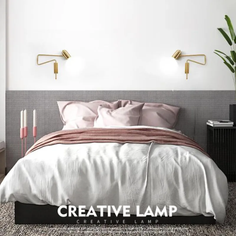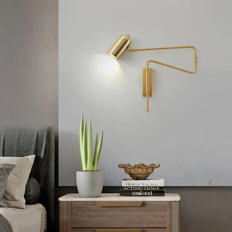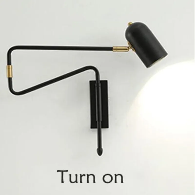 Промышленная Регулируемая Выдвижная настенная лампа с длинной рукояткой, креативная прикроватная лампа с выключателем для чтения, E27, гибкие складные черные, золотые