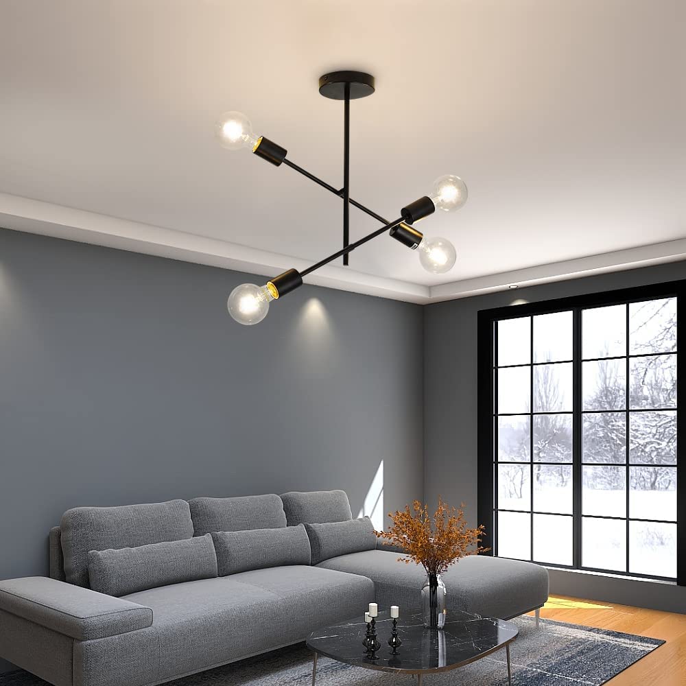 Промышленный потолочный светильник с 4 головками E27 Винтажный потолочный светильник без лампочки для освещения и оформления интерьера, диаметр: 42 см