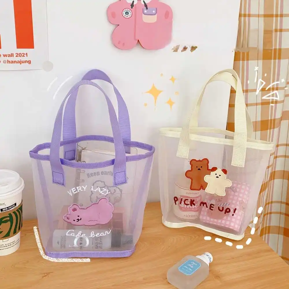 Простая Милая прозрачная сетчатая Портативная сумка через плечо Ins в стиле ретро, новая пляжная сумка для девочек для мытья макияжа и багги