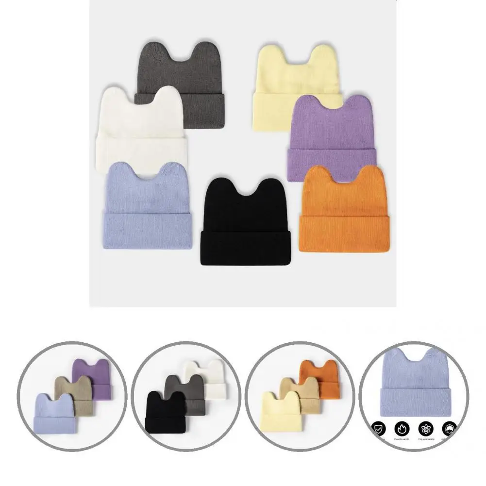 Простая Милая шапка бини, легкая вязаная шапка, Зимняя шерстяная шапка с кроличьими ушками для женщин, Шапка-бини для студентов