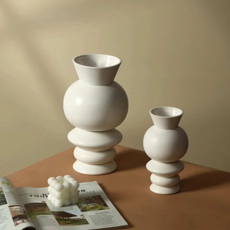Простая белая многослойная прямая глазурованная керамическая ваза в европейском стиле, украшения для дома, модель, украшения для комнаты