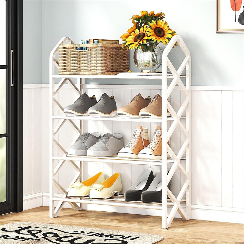 Простая бытовая 4-х уровневая компактная X-образная полка для обуви, многофункциональная сборная обувная тумба, пыленепроницаемая полка для хранения обуви белый