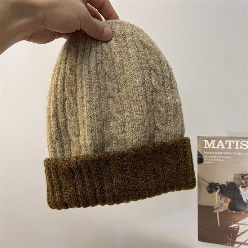 Простая двухцветная шерстяная шапка с нашивкой, женская осенне-зимняя теплая универсальная двусторонняя шапка с защитой ушей, шапка-мешок на голову, кашемировая вязаная шапка Average size 54 -60CM темно-коричневого