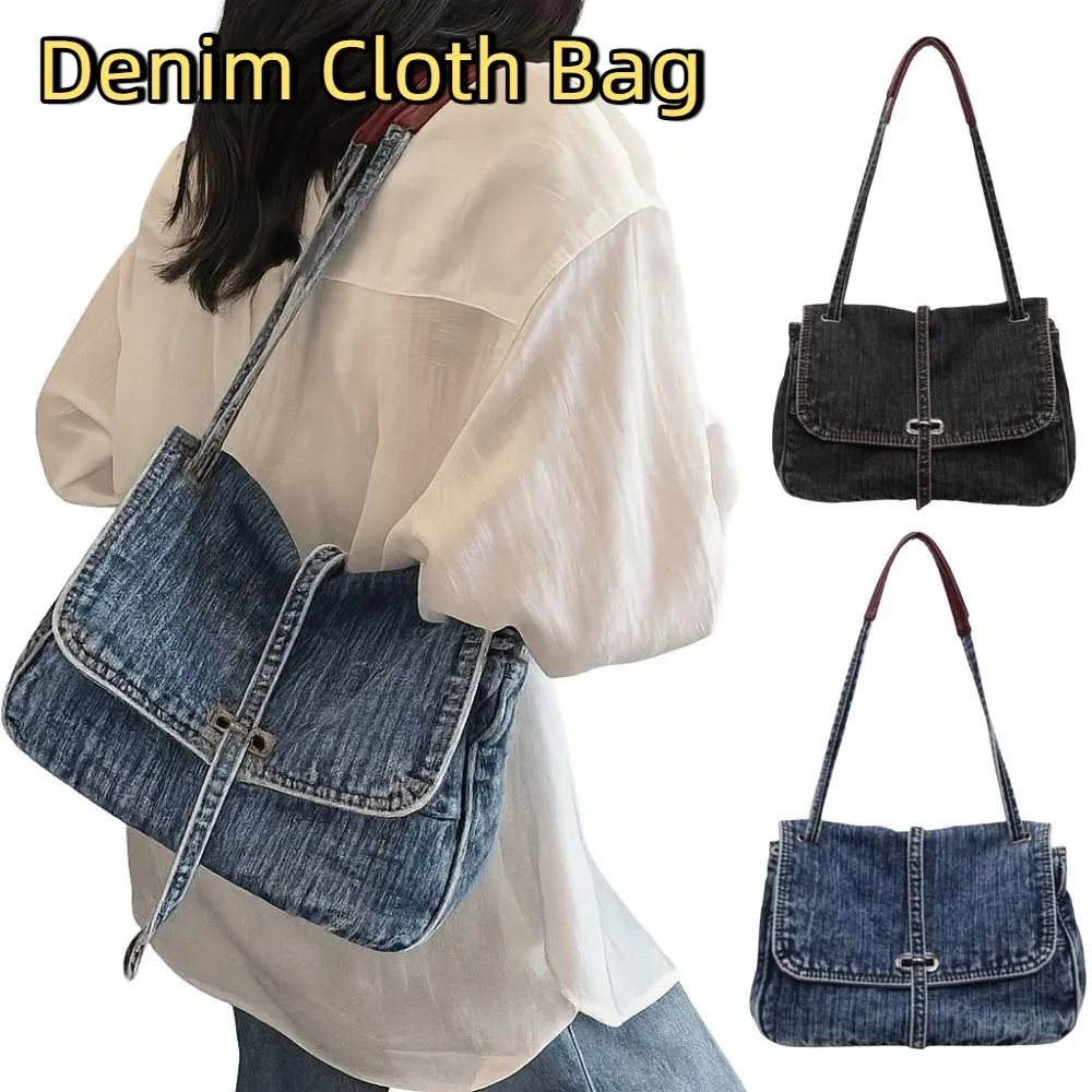 Простая джинсовая тканевая сумка в стиле ретро, большая вместительная простая холщовая сумка на плечо, сумка для покупок, однотонная холщовая сумка-тоут, уличная одежда