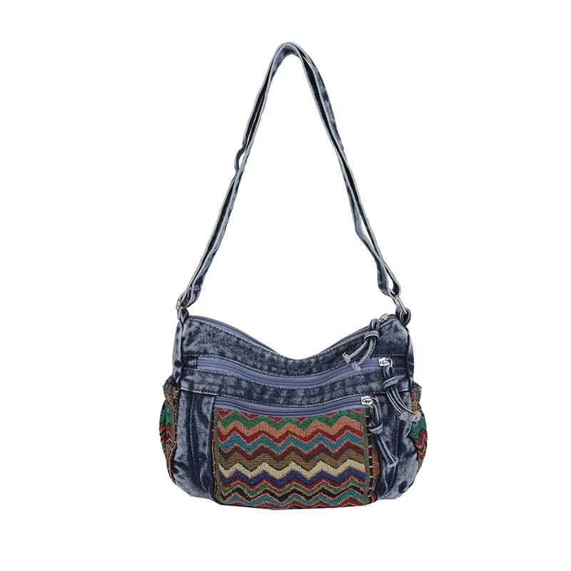 Простая женская джинсовая сумка через плечо, маленькая, с несколькими карманами, на молнии, стильная, для повседневного использования, для покупок, для путешествий темно-синий