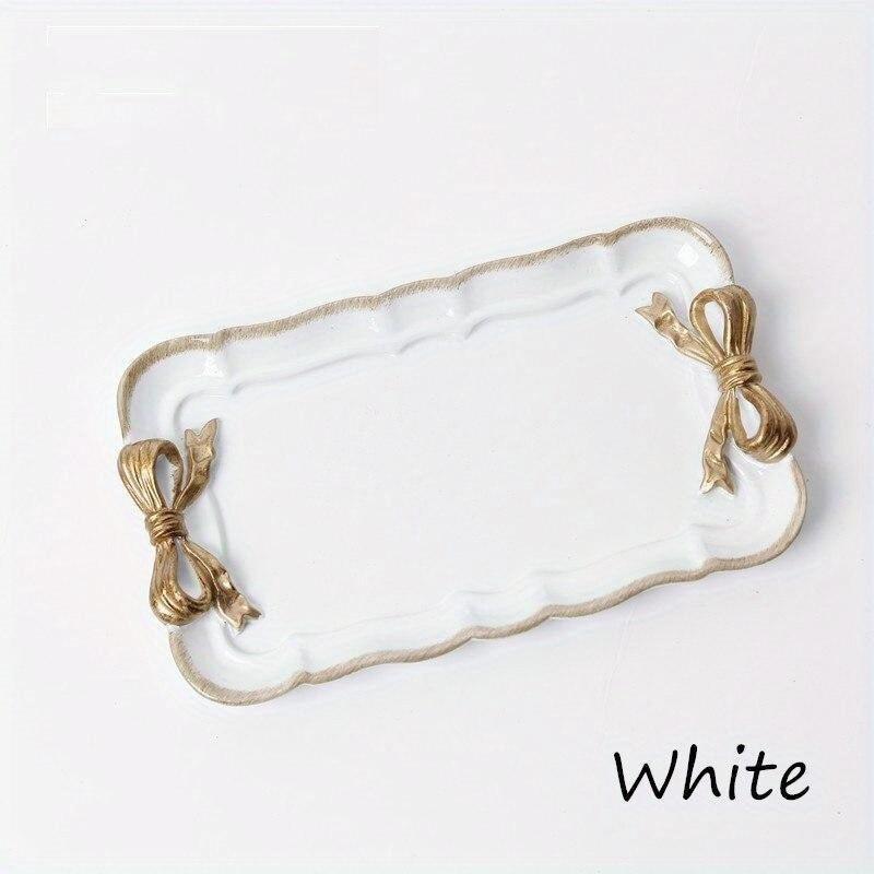 Простая креативная смоляная десертная тарелка для торта с бантом, набор прямоугольных тарелок ручной работы, имитация керамических тарелок, украшение для вечеринки