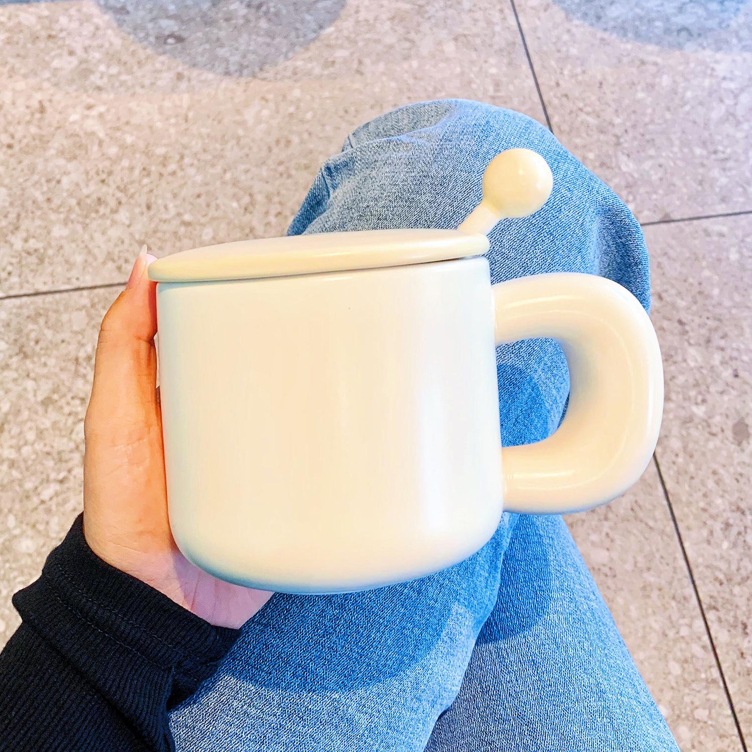 Простая кружка Женская Высокая ценность Керамическая чашка с крышкой и ложкой Чашка для воды Чашка для завтрака Молоко Кофе 301-400ml