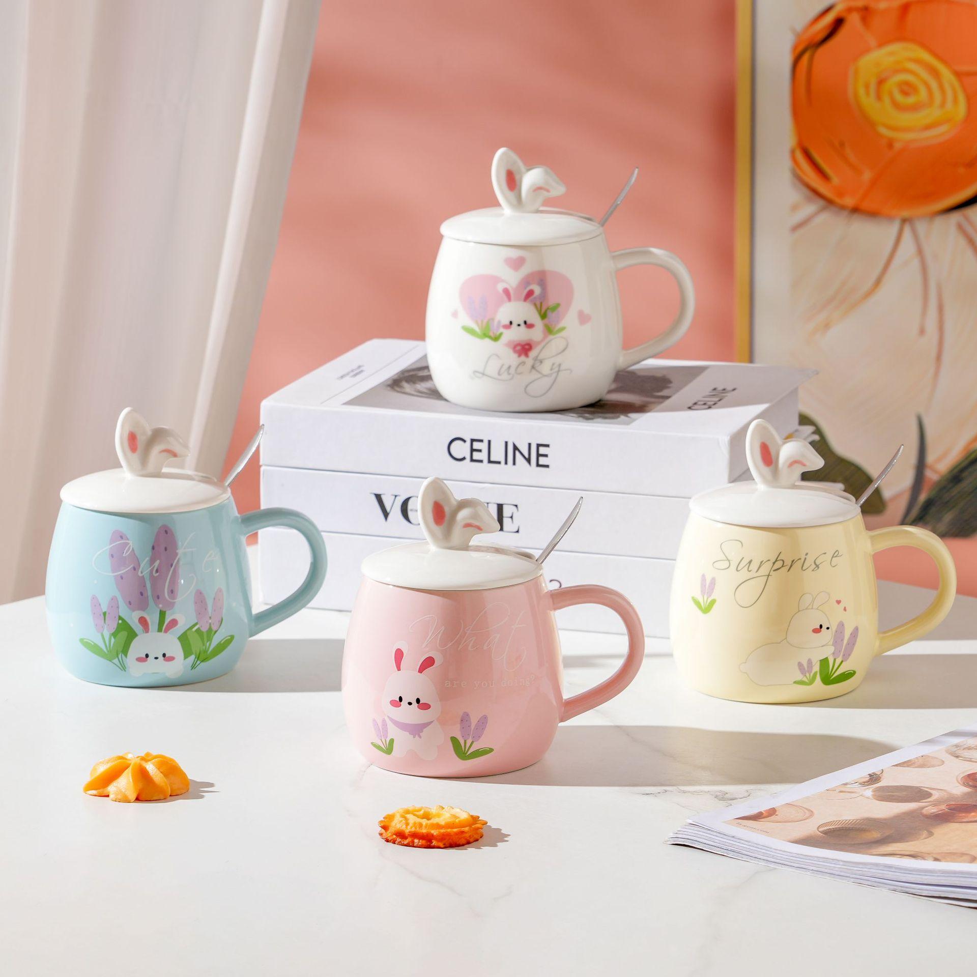 Простая мультяшная милая керамическая чашка с крышкой-ложкой, кружка, домашний набор, креативная индивидуальная чашка для воды для девочек 420ML