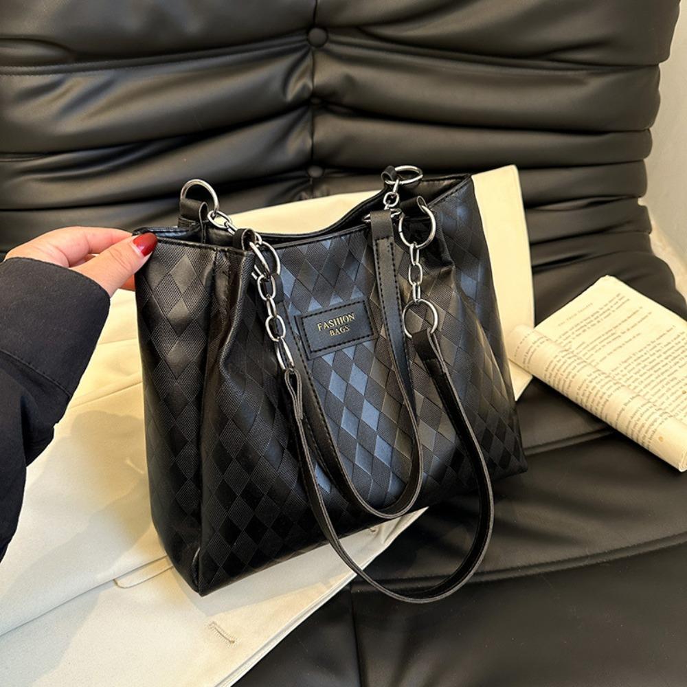 Простая наплечная сумка в корейском стиле, сумка большой вместимости из ПУ, сумка для покупок из ПУ, ручная сумка для работы чёрный