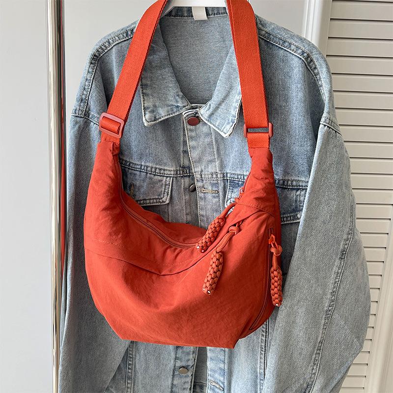 Простая однотонная сумка-пельмень, расслабляющая и плиссированная сумка через плечо для женщин, летняя сумка через плечо большой вместимости, нейлоновая легкая ткань