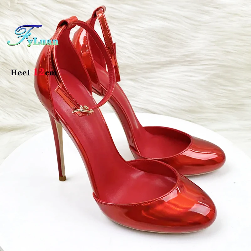 Женские сандалии Baotou, модные женские туфли-лодочки с круглым носком, туфли на шпильке 10 см, 12 см, 2024, летние вечерние элегантные модельные туфли, красные