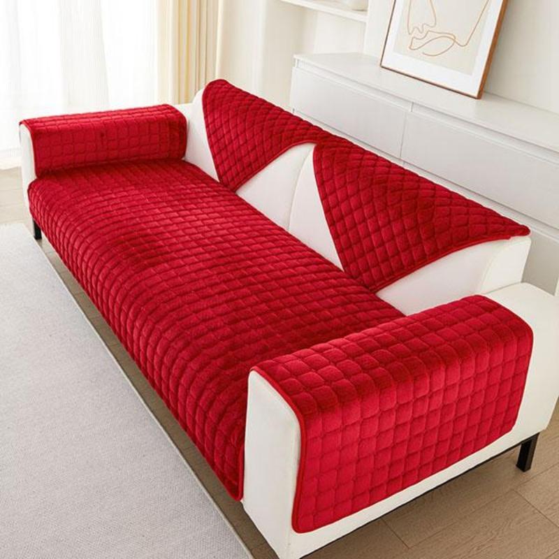 Простая подушка для дивана, фланелевая нескользящая кожаная подушка для дивана, зимняя мебель для гостиной, комплект для дивана, полностью обернутое полотенце из песочного волоса 70x70cm 1pc красный