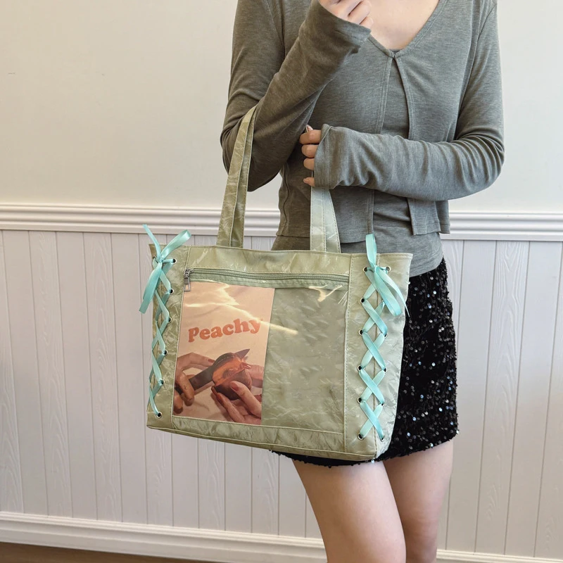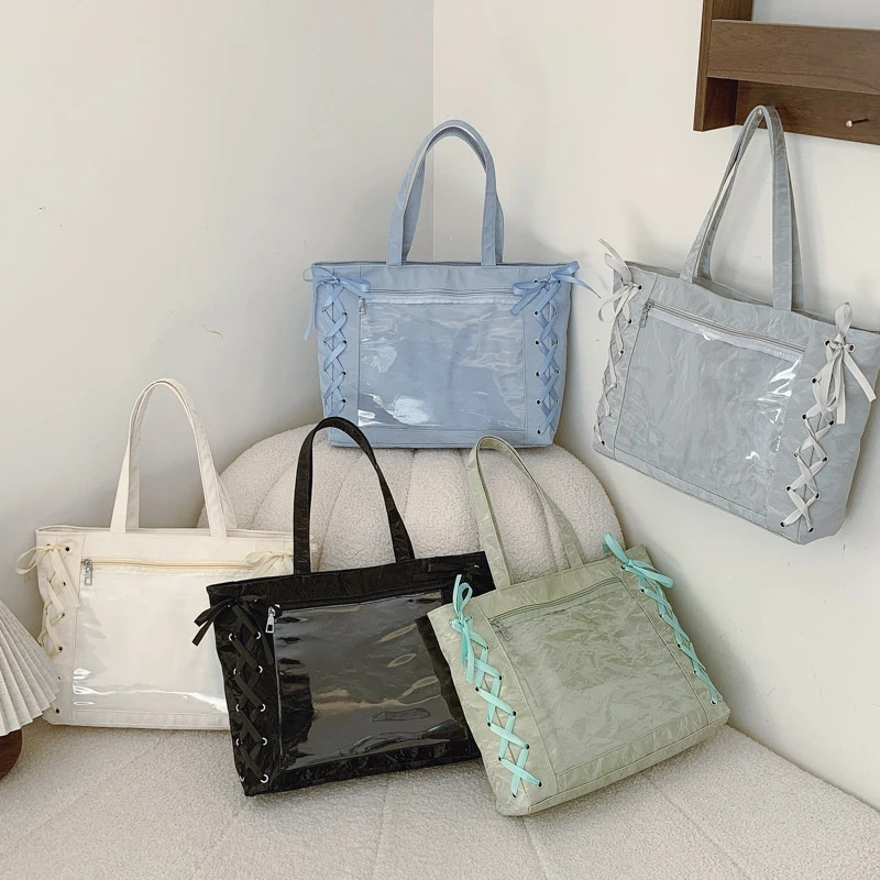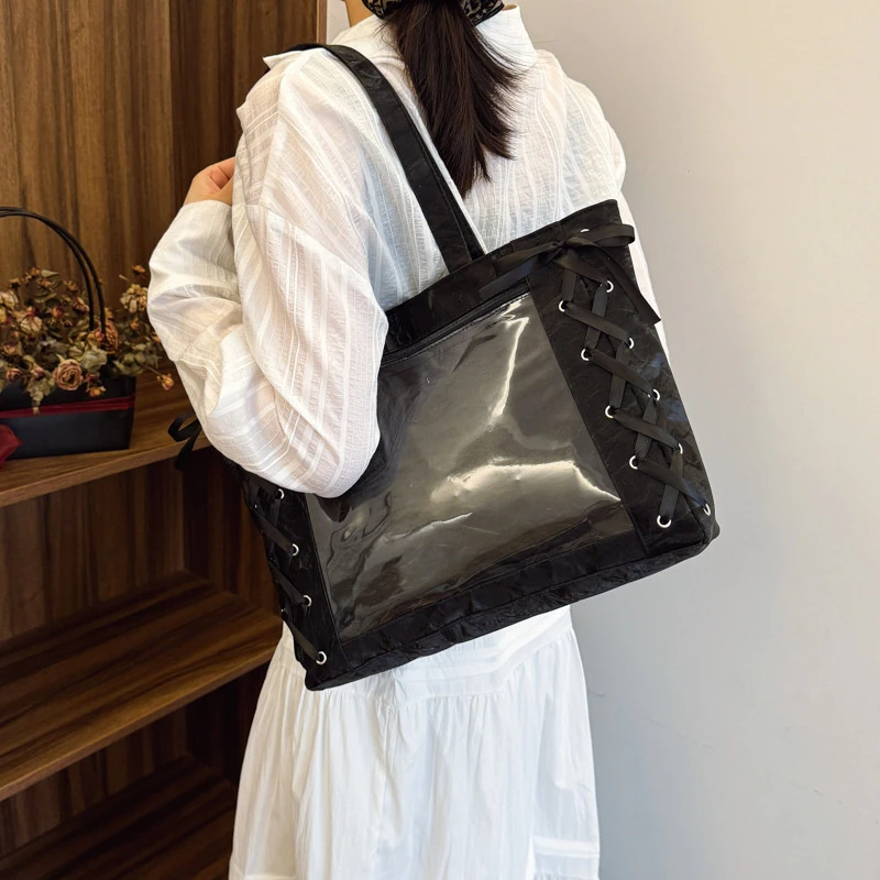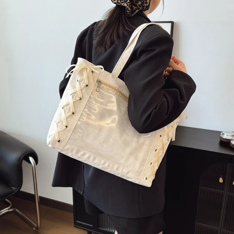 Простая прозрачная сумка на плечо с милым бантом и лентой, большая вместительная ручная сумка-тоут, однотонная сумка для подмышек, подарки