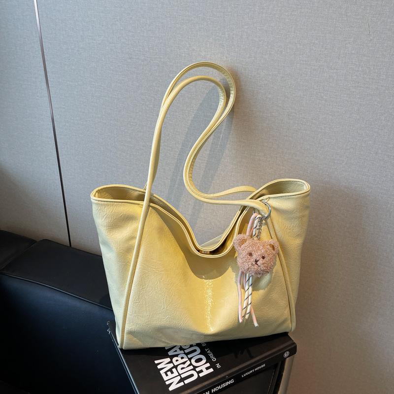 Простая сумка оверсайз женская 2025 новая большая вместительная студенческая сумка для занятий модная сумка через плечо тренд жёлтый