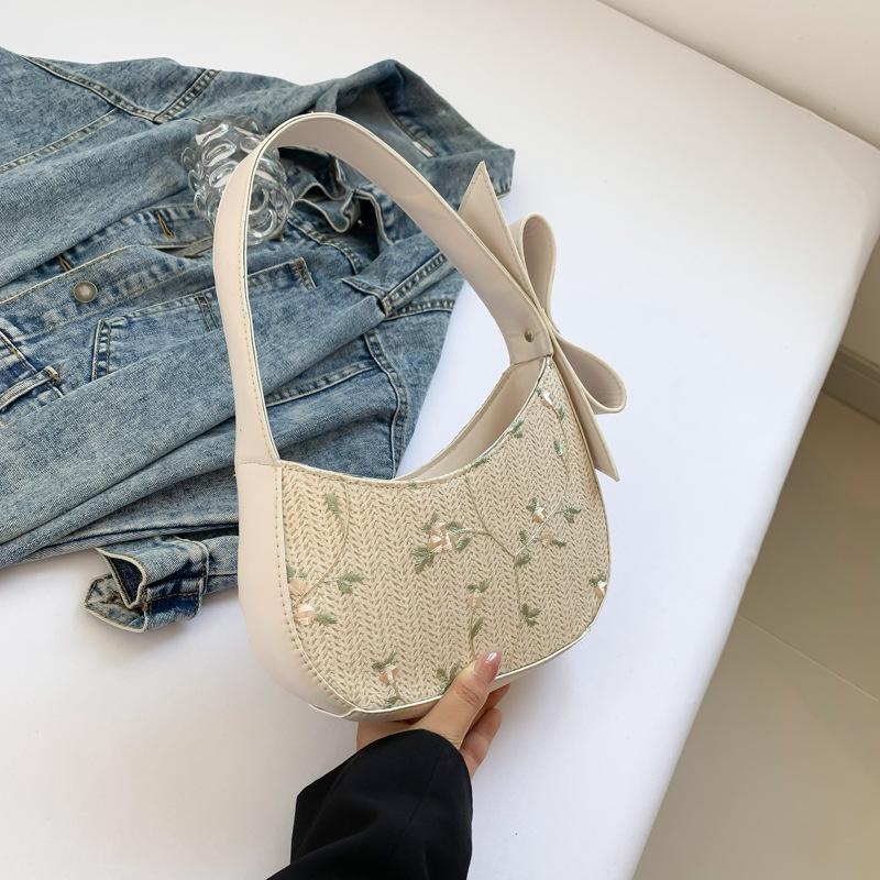 Простая текстура, повседневная и персонализированная сумка в форме полумесяца, летняя новая соломенная плетеная сумка, корейская версия, красивая и модная сумка на плечо